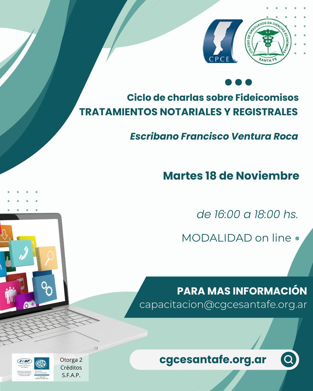 18/11 – 16 h Ciclo de charlas sobre Fideicomisos. Tratamientos Notariales y registrales