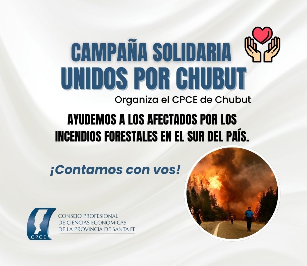El CPCE de Chubut se encuentra realizando una campaña solidaria para recaudar fondos, destinada a bomberos, brigadistas, defensa civil y las localidades afectadas por los incendios.