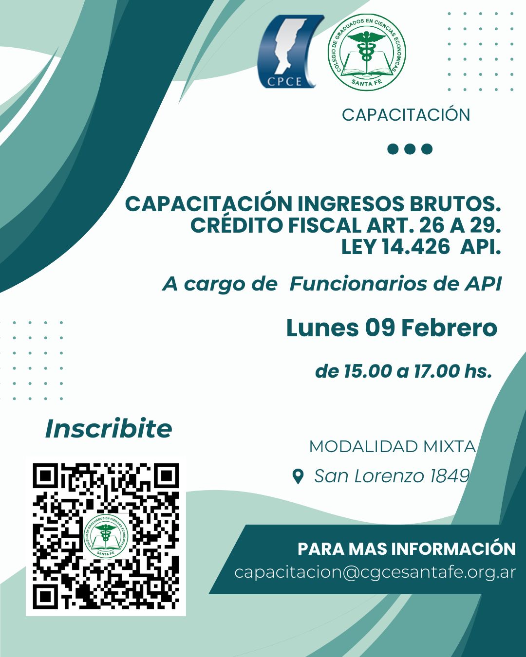 NoticiasAgendaFebrero 09/02 – 15hs Capacitación Ingresos Brutos. Crédito Fiscal Art. 26 a 29. Ley 14.426 a cargo de Funcionarios de Api. 0 28 Inscripciones 09/02 – 15hs Presencial/Online Aula 1 – Piso2