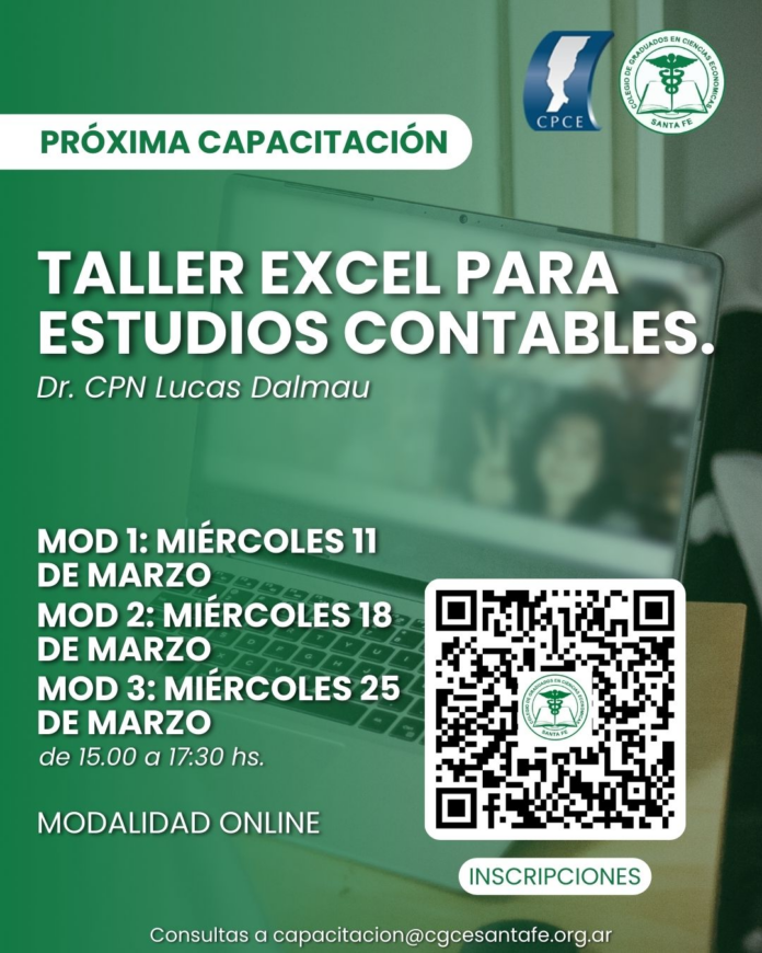 11/03 – 15hs Taller Excel para Estudios Contables 2026. Dr. CPN Lucas Dalmau