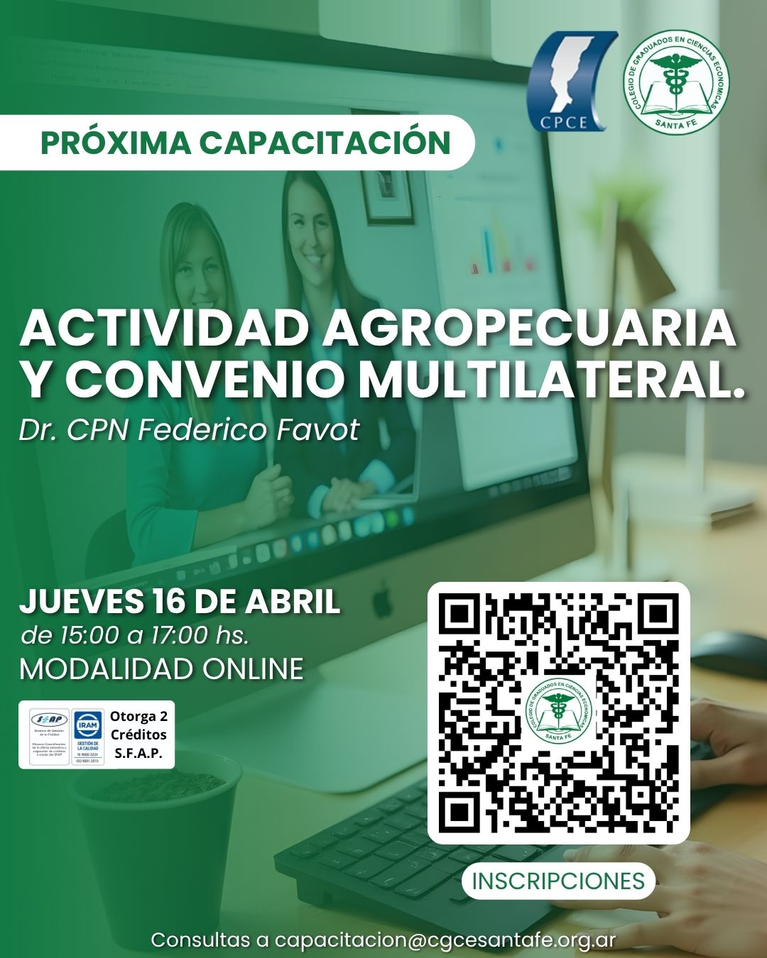 16/04 – 15hs Actividad Agropecuaria y Convenio Multilateral. Dr. CPN Federico Favot