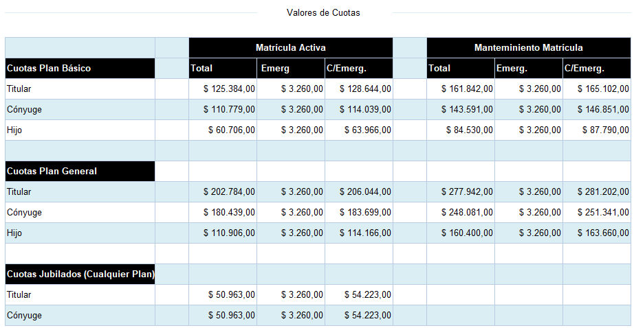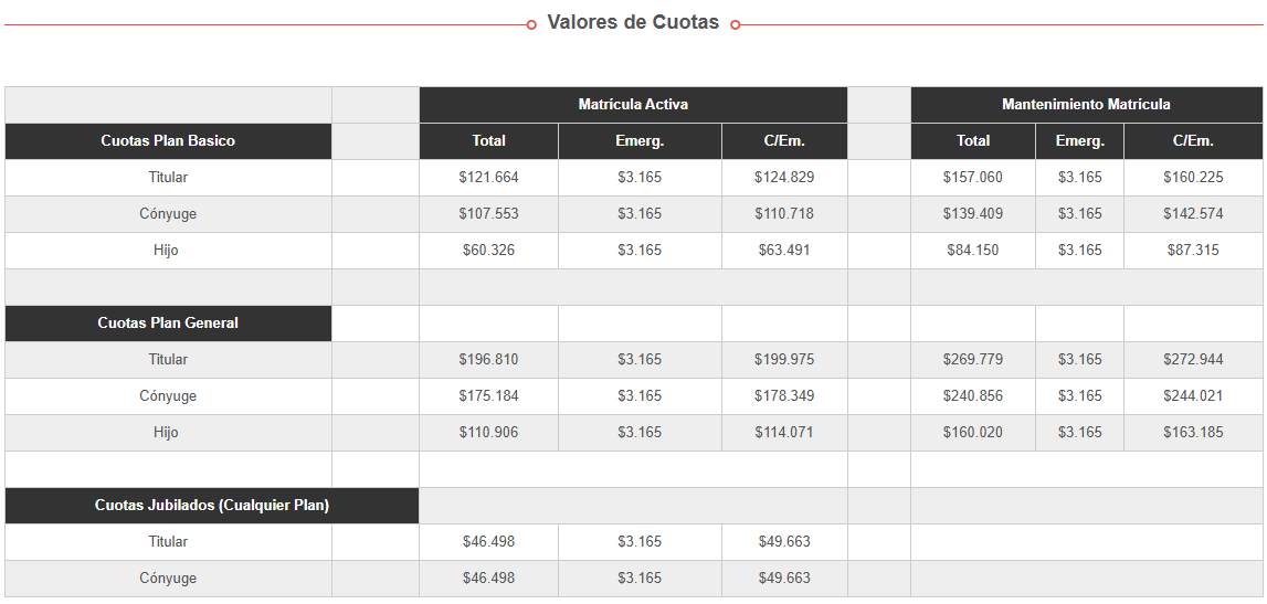 - Se aplicará un índice de incremento en la cuota según la edad de afiliación del titular al sistema. Consultar detalle con el DSS.