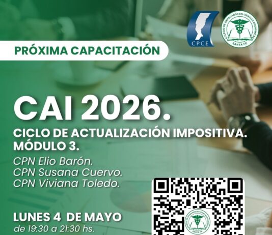 04/05 – 19.30hs Ciclo de Actualización Impositiva Año 2026. Módulo 3. CPN Elio Barón. CPN Susana Cuervo. CPN Viviana Toledo.
