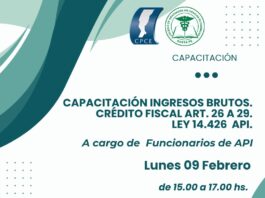 09/02 – 15hs Capacitación Ingresos Brutos. Crédito Fiscal Art. 26 a 29. Ley 14.426 a cargo de Funcionarios de Api.
